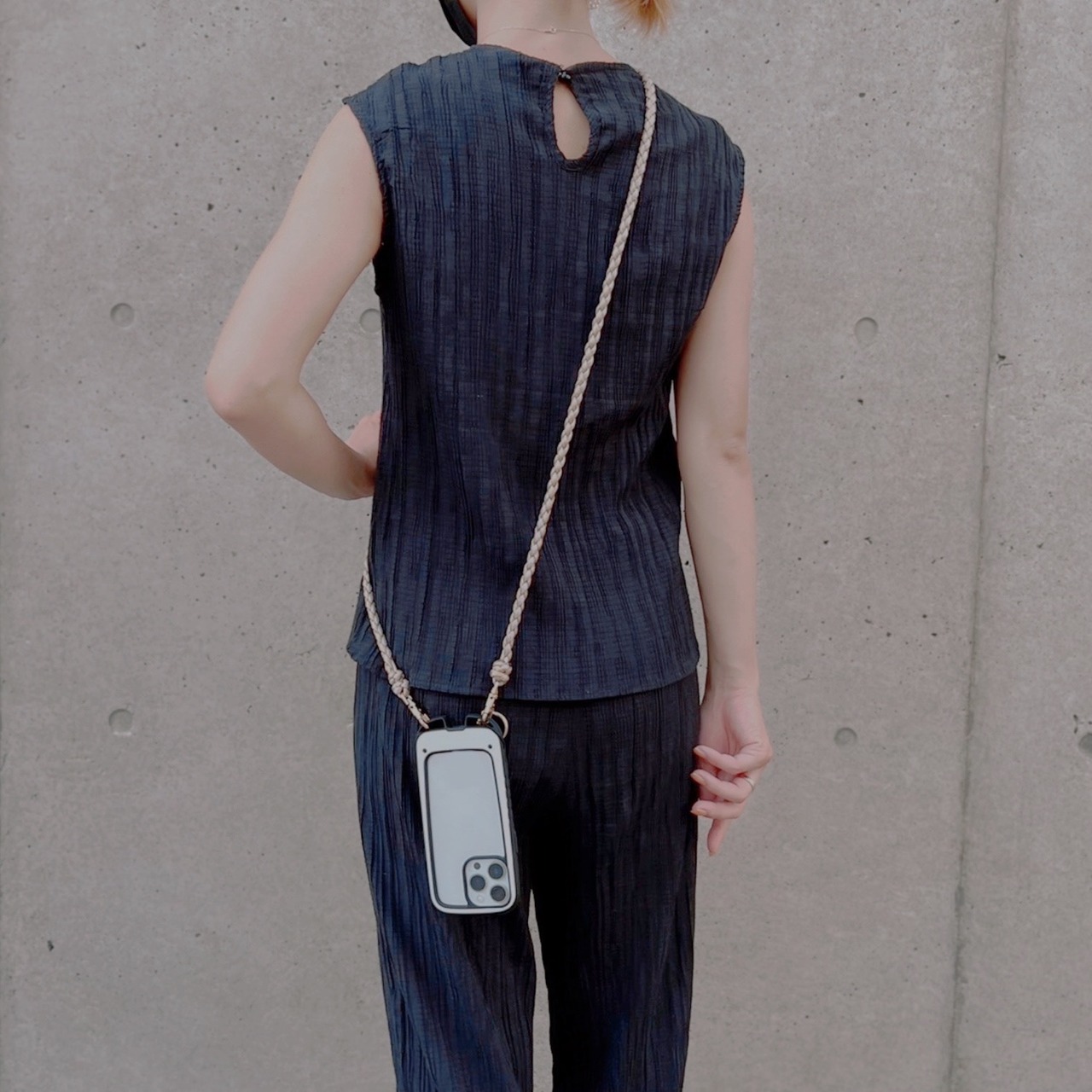 ポケットの付いていない服の時でもスマホを手で持たなくて良いので失くしません♡